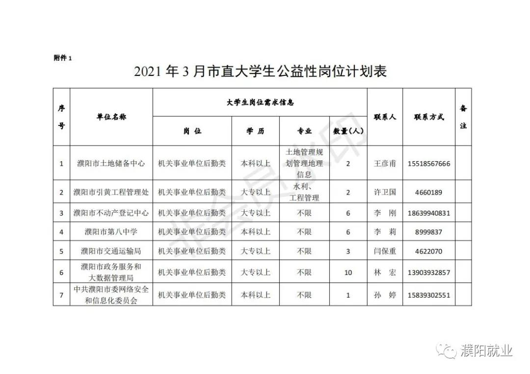 1、見附件1《2021年3月市直大學(xué)生公益性崗位計(jì)劃表》